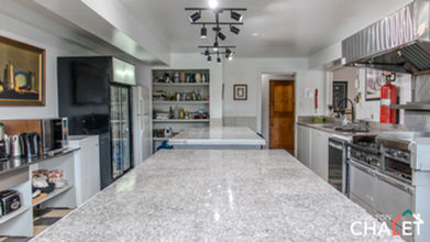 Une cuisine de calibre commerciale entièrement équipée! Four commercial au gaz, four électrique, Lave-vaisselle, 2 réfrigérateurs commerciaux, réfrigérateur résidentiel avec congélateur, congélateur, micro-ondes, machine à café filtre 40 tasses, grille-pain commercial “convoyeur”. Toute la vaisselle nécessaire et tout l’équipement nécessaire pour cuisiner! Vaisselle blanche et nappe blanche pour mariages *Sur demande. *Prendre note que l'eau n'est pas potable au chalet mais vous avez à votre dispositions des bouteilles d’eau 18L sur machine réfrigérante.